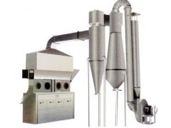 沸騰干燥器,又稱流化床,它是由空氣過濾器,沸騰床主機(jī),旋風(fēng)分離器,布袋除塵器,高壓離心通風(fēng)機(jī),操作臺(tái)組成。由于被干燥物料的性質(zhì)不同,配套除塵設(shè)備時(shí),可按需要進(jìn)行,可同時(shí)選擇旋風(fēng)分離器,也可選擇其中的一種,一般來說,比重較大時(shí)的物料只需要選擇旋風(fēng)分離器,比重較輕,較細(xì)的物料需配套布袋除塵器,并備有氣力送料裝置供選擇。