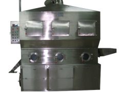 潔凈的熱風(fēng)經(jīng)閥板分配進(jìn)入床體內(nèi),從加料器進(jìn)入的濕物料被熱風(fēng)形成沸騰狀態(tài),由于與熱風(fēng)與物料廣泛接觸,增強(qiáng)了傳熱傳質(zhì)的過程,因此在較短時(shí)間內(nèi)就可干燥。從床頭一頭進(jìn)入,經(jīng)過幾十秒至幾分鐘沸騰干燥,自動(dòng)從床體另一頭流出,本設(shè)備一般進(jìn)行負(fù)壓操作。